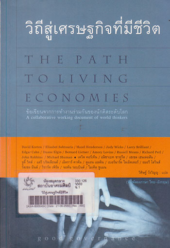 วิถีสู่เศรษฐกิจที่มีชีวิต : ข้อเขียนจากการทำงานร่วมกันของนักคิดระดับโลก = The path to living economies : a collective working document of world thinkers / เดวิด คอร์เท็น ... [และคนอื่นๆ] ; วิศิษฐ์ วังวิญญู, แปล