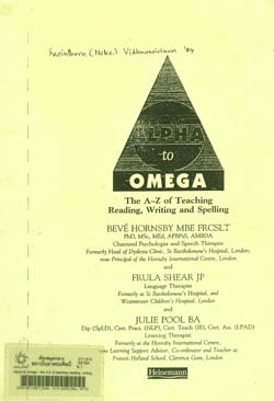 Alpha to omega : the A-Z of teaching reading, writing, and spelling / Beve Hornsby and Frula Shear.
