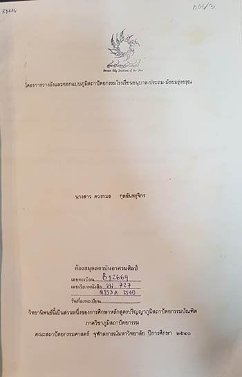 | 1. | วิทยานิพนธ์ : | 727 ด153ค 2540 Barcode: ASIA-B012669 | ►สิ่งพิมพ์สถาบันอาศรมศิลป์ | On Shelf ขอยืม | |||||