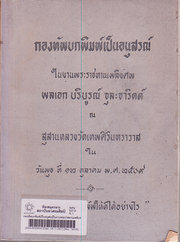 | 1. | หนังสือ | อศน บ218 Barcode: ASIA-B020644 | ►หนังสืองานศพ | On Shelf ขอยืม | |||||