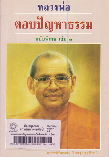 | รายการใกล้เคียง ผู้แต่ง [พระมหาวีระ ถาวโร] หัวเรื่อง [พุทธศาสนา คำถามและคำตอบ]