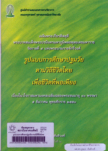 รูปแบบการศึกษาปฐมวัย ตามวิถีชีวิตไทย เพื่อชีวิตที่พอเพียง / บุษบง ตันติวงศ์