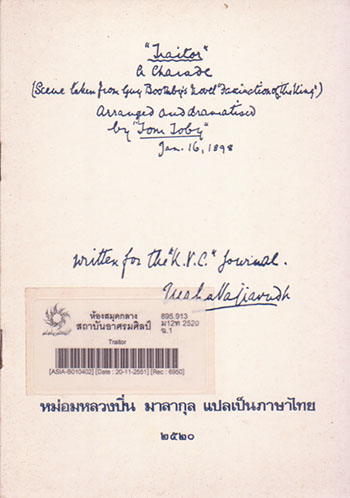 Traitor บทละครปริศนาของพระบาทสมเด็จพระมงกุฎเกล้าเจ้าอยู่หัวทรงพระนิพนธ์ไว้เมื่อวันที่ 16 มกราคม 2440 / ม.ล. ปิ่น มาลากุล, แปล