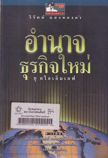 | 1. | หนังสือ | 651.1 ว691อ Barcode: ASIA-B000918 | ►เทคโนโลยี | On Shelf ขอยืม | |||||
