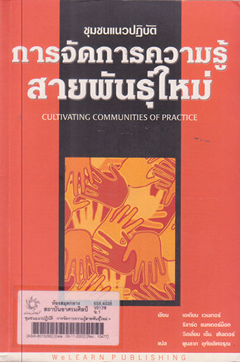 ชุมชนแนวปฏิบัติ : การจัดการความรู้สายพันธุ์ใหม่ = Cultivating communities of practice / เอเตียน เวนเกอร์, ริชาร์ด แมคเดอร์ม็อท, วิลเลี่ยม เอ็ม. ชไนเดอร์ :เขียน ; พูนลาภ อุทัยเลิศอรุณ : แปล | | ชื่อเรื่องที่แตกต่าง |
