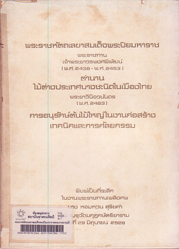 ตำนานไม้ต่างประเทศบางชะนิดในเมืองไทย / พระยาวินิจวนันดร(2483) - การอนุรักษ์ต้นไม้ใหญ่ในงานก่อสร้างเทคนิคและการศัลยกรรม |
