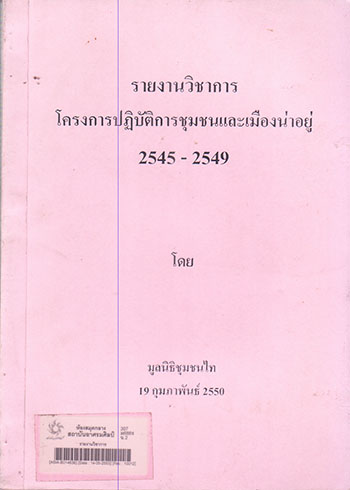 รายงานวิชาการ โครงการปฏิบัติการชุมชนและเมืองน่าอยู่ 2545- 2549/ มูลนิธิชุมชนไท