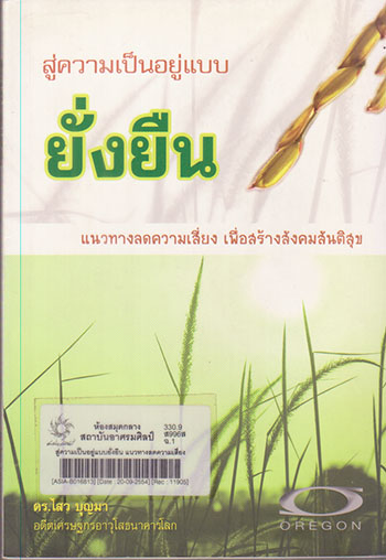 สู่ความเป็นอยู่แบบยั่งยืน แนวทางลดความเสี่ยง เพื่อสร้างสังคมสันติสุข / ไสว บุญมา ,