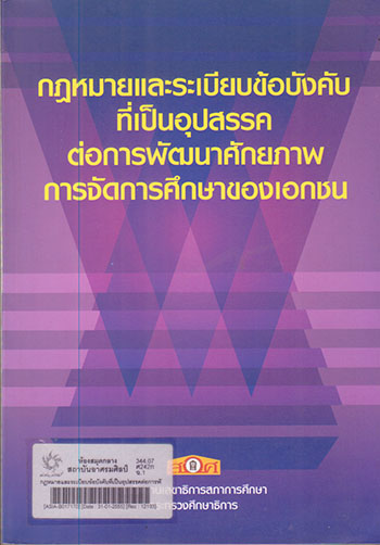 หัวเรื่อง  การศึกษาเอกชน--กฎหมายและระเบียบข้อบังคับ--วิจัย.