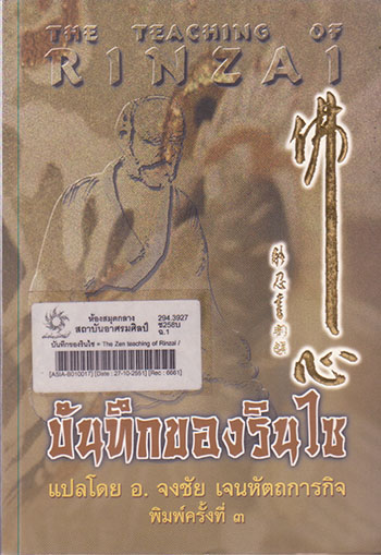 บันทึกของรินไซ = The Zen teaching of Rinzai / [แปลจากฉบับภาษาอังกฤษ] ของเอียมการ์ด ชเลอเกิล ; โดย จงชัย เจนหัตถการกิจ