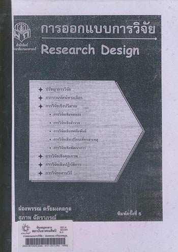 | รายการใกล้เคียง ผู้แต่ง [ผ่องพรรณ ตรัยมงคลกูล] หัวเรื่อง [Research Design]