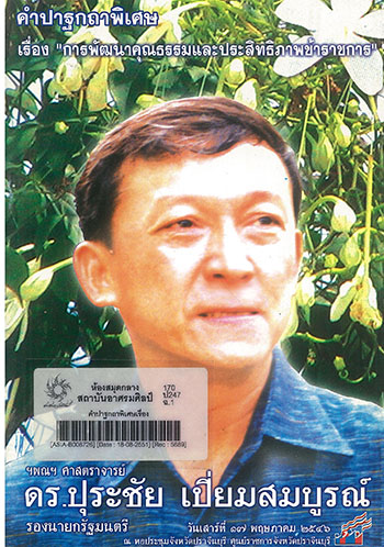 คำปาฐกถาพิเศษเรื่อง / องค์การบริหารส่วนจังหวัดปราจีนบุรี