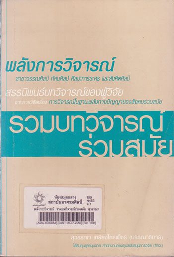 พลังการวิจารณ์ : รวมบทวิจารณ์ร่วมสมัย / สุวรรณา เกรียงไกรเพ็ชร์, บรรณาธิการ |