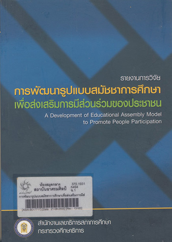 การพัฒนารูปแบบสมัชชาการศึกษาเพื่อส่งเสริมการมีส่วนร่วมของประชาชน : รายงานการวิจัย / พฤทธิ์ ศิริบรรณพิทักษ์... [และคณะ]