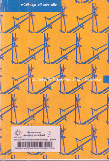 | 1. | หนังสือ | 720 น927 2541 Barcode: ASIA-B019630 | ►ศิลปะ นันทนาการ | On Shelf ขอยืม | |||||